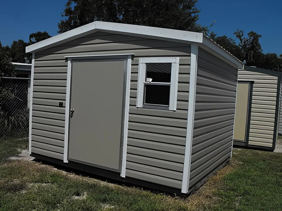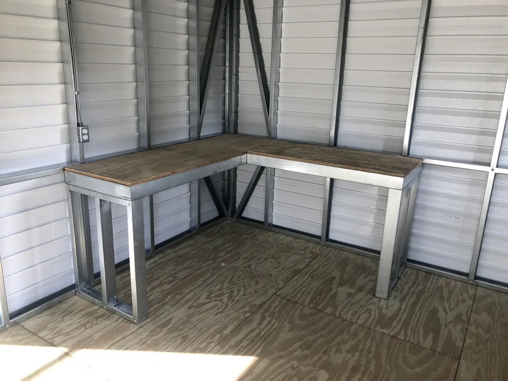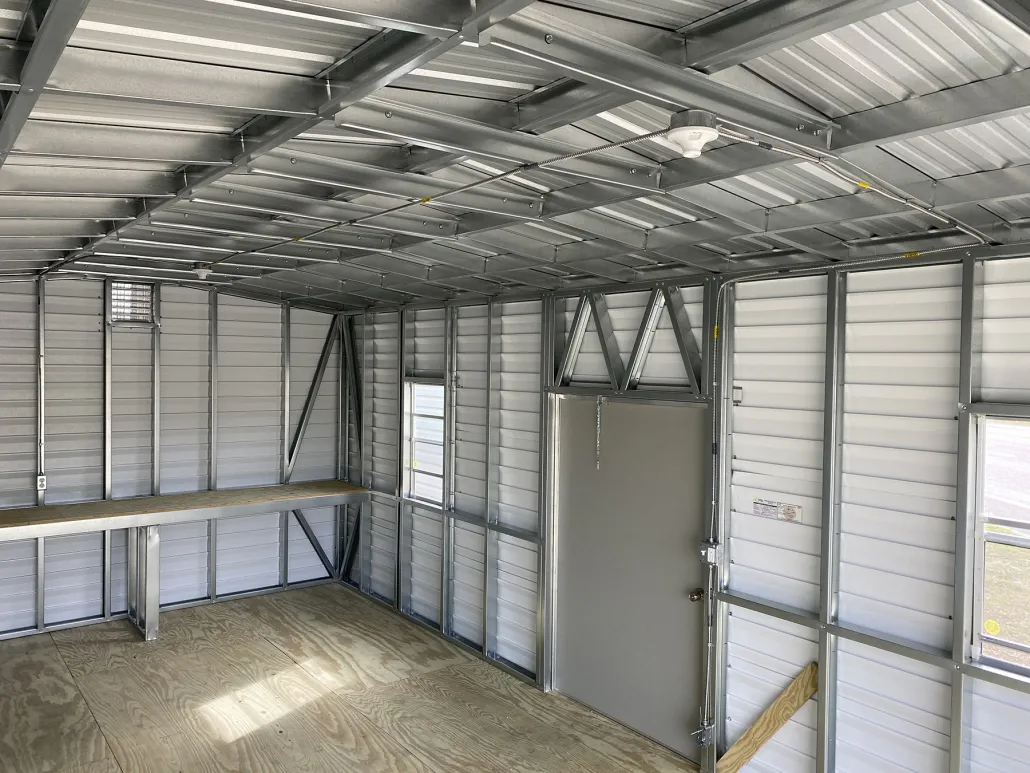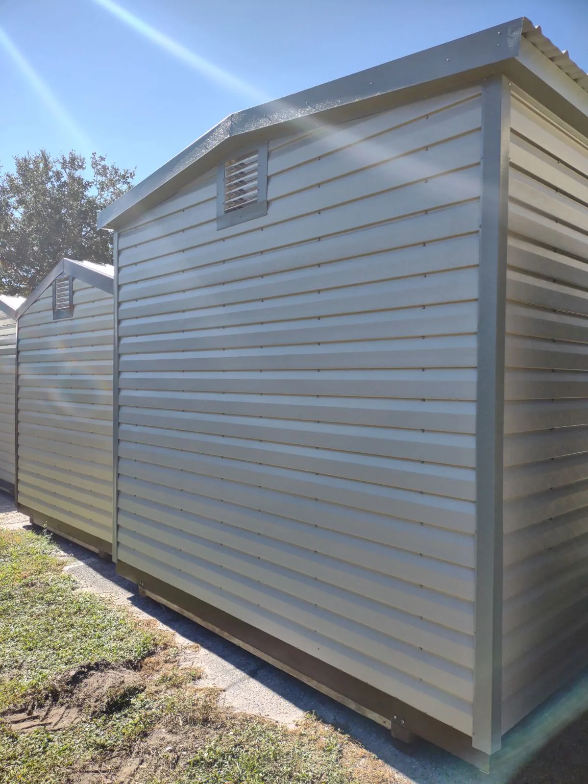 Our sheds come with lights, outlets and wiring! Built for Florida weather, 180mph wind strength.
