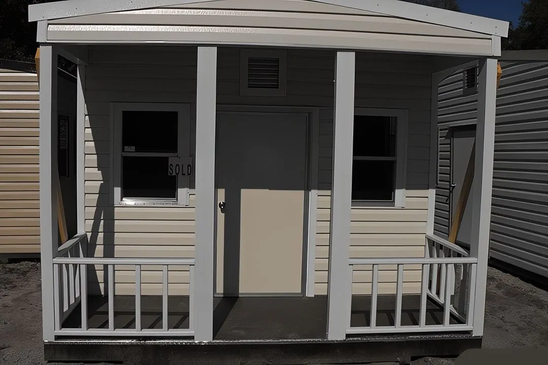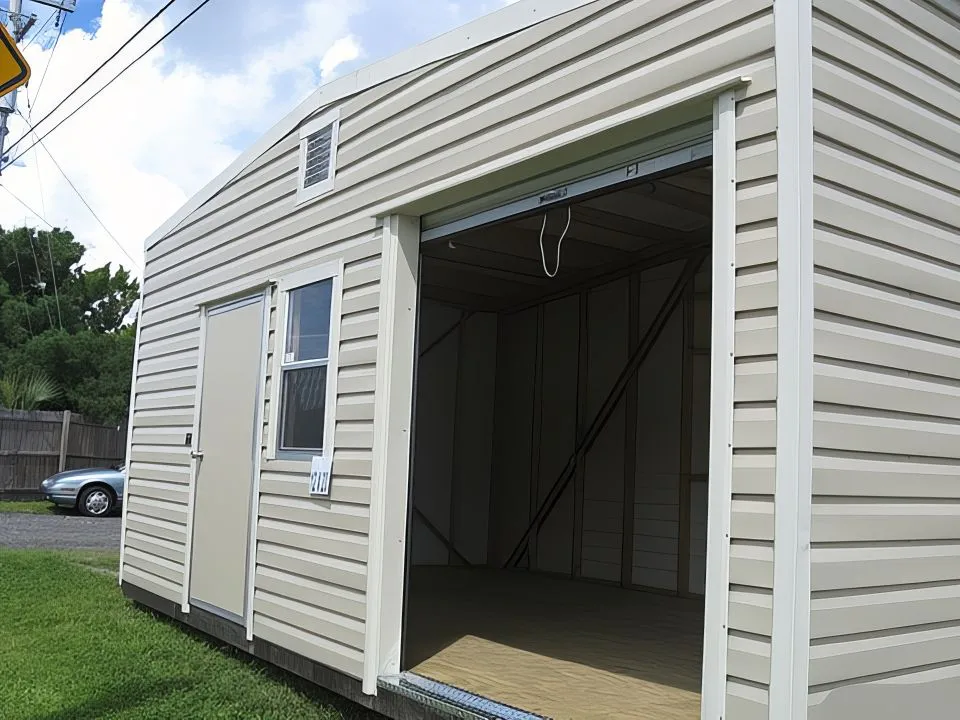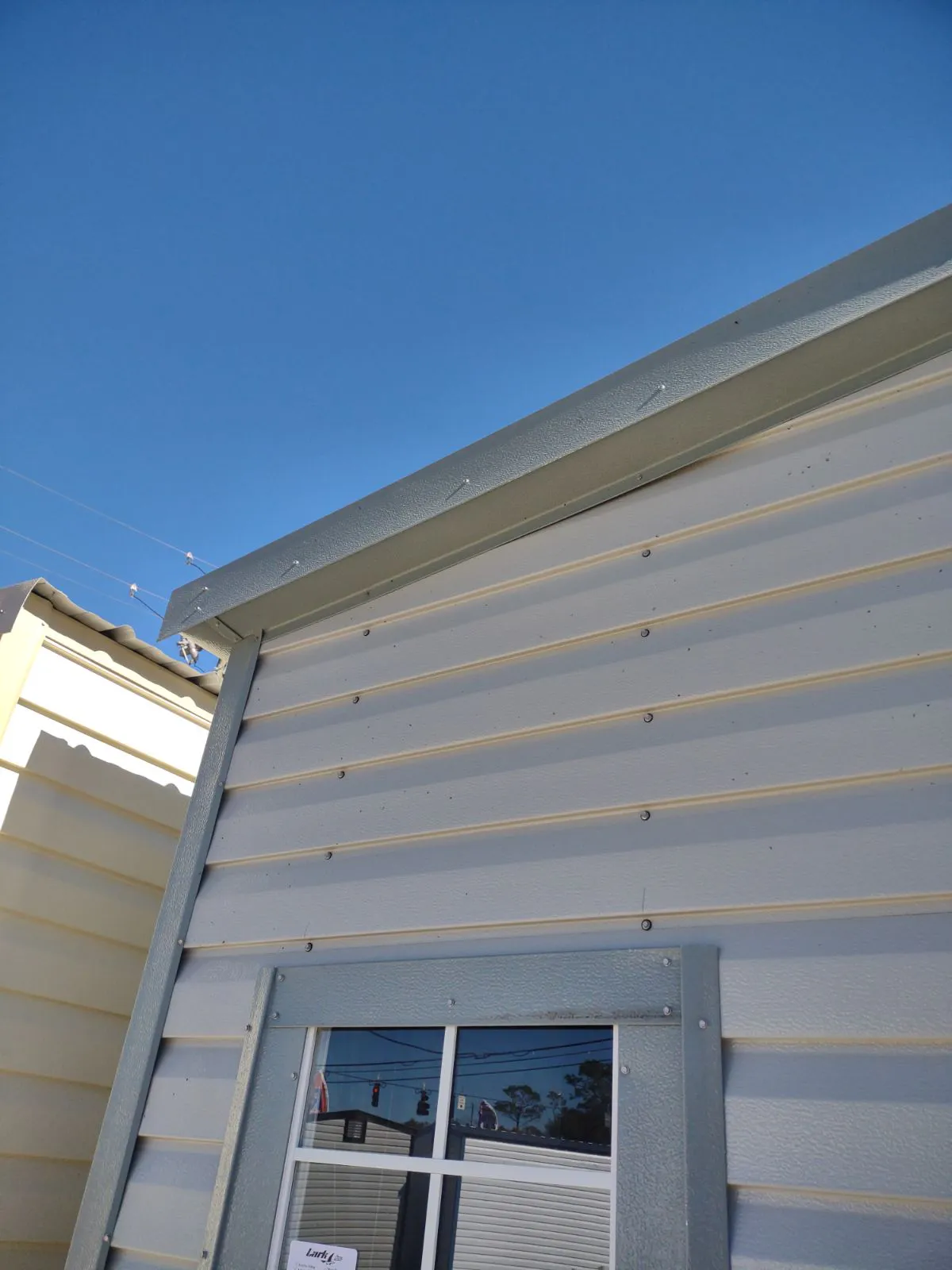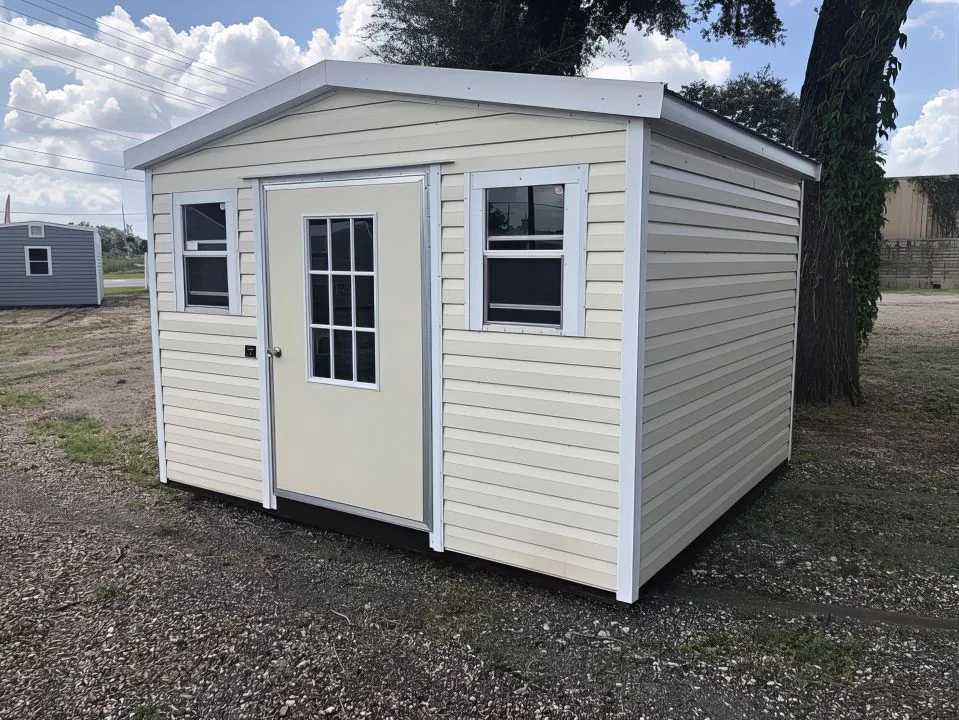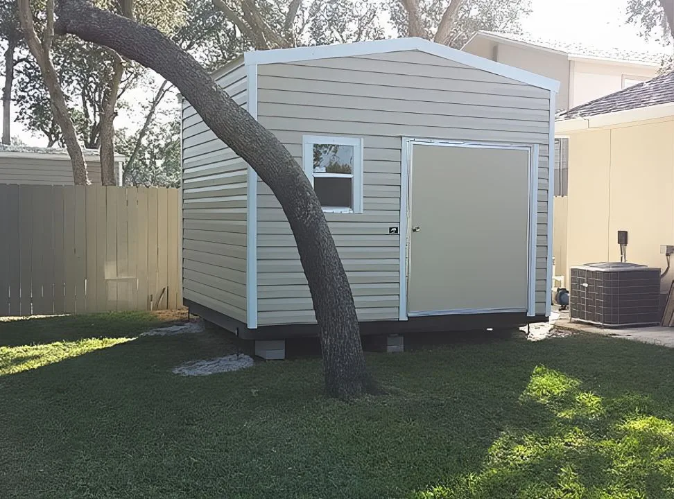 Our sheds come with lights, outlets and wiring! Built for Florida weather, 180mph wind strength.