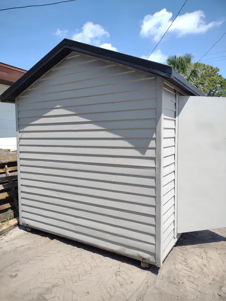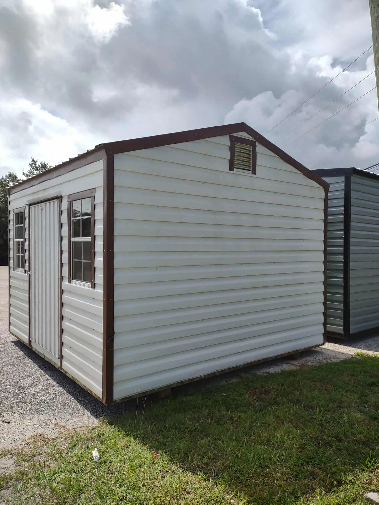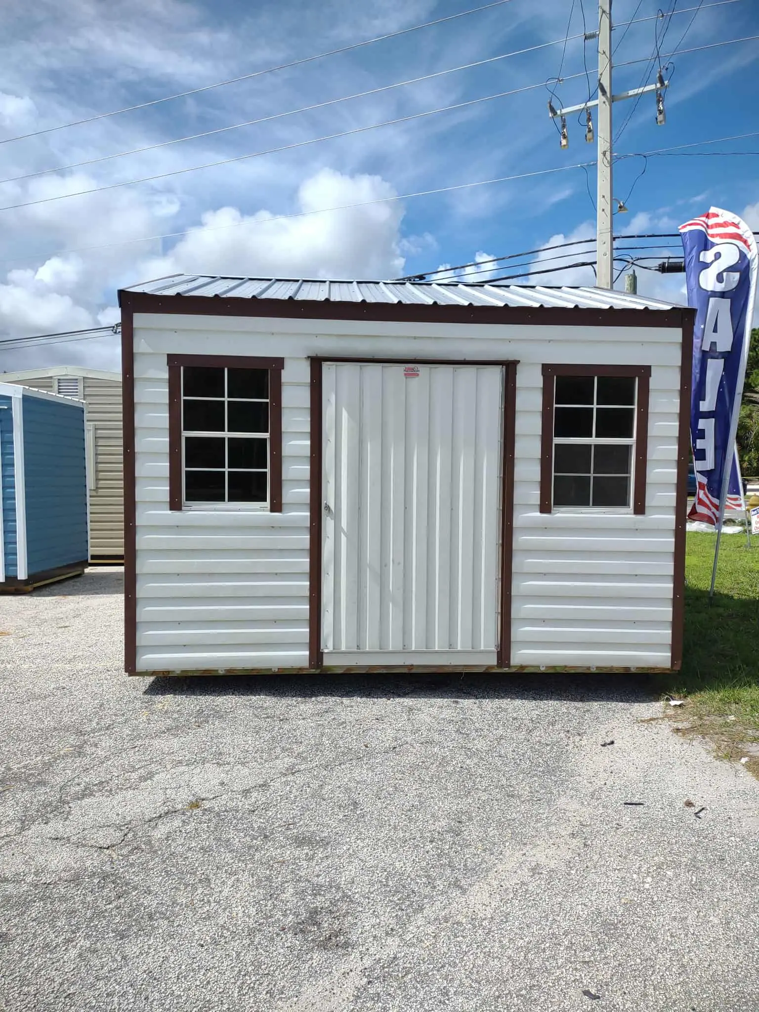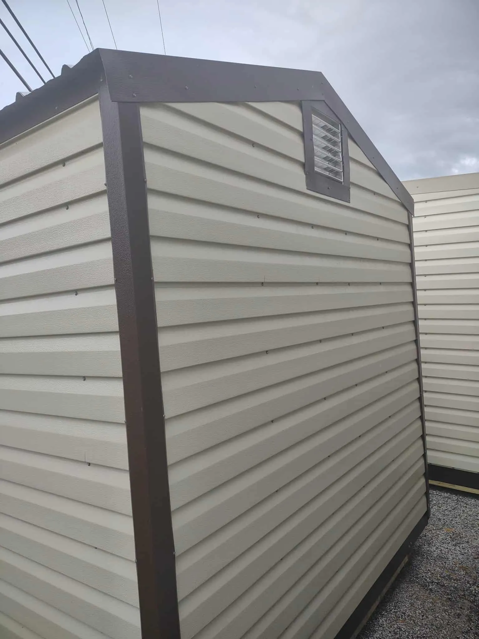 Preowned 8 x 10 Lapsider Endgable Antique Beige and Brown 1 window, 1 vent, 1 light/outlet 46 x 72 door. $2500. Stop by or give us a call today!