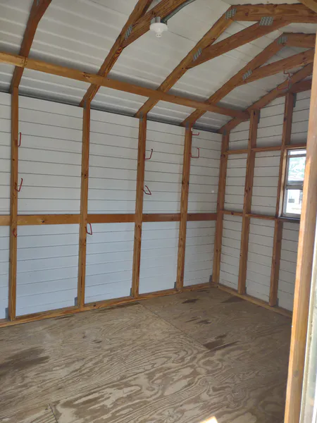 10 x 12 Preowned Lumberjack shed. Antique Beige and brown trim with a 60 in door. Has 1 vent 1 light/outlet and even comes with a ramp. Price is $3700 with free delivery & professional installation! Give a call or stop by today!