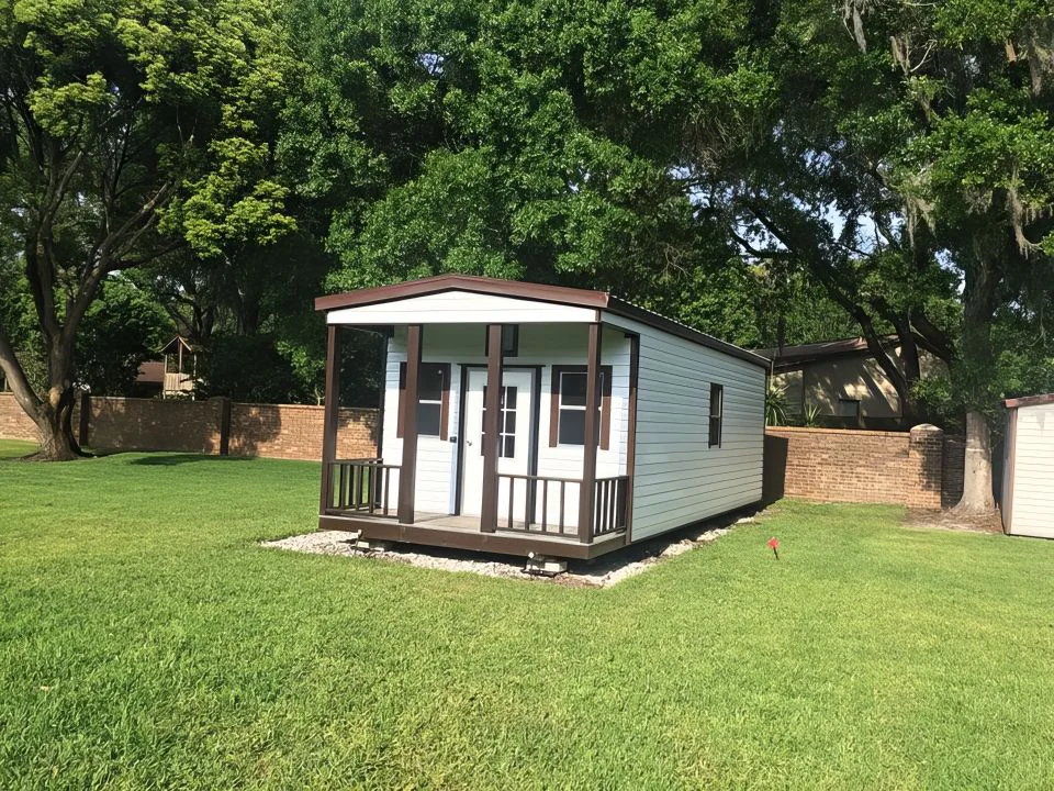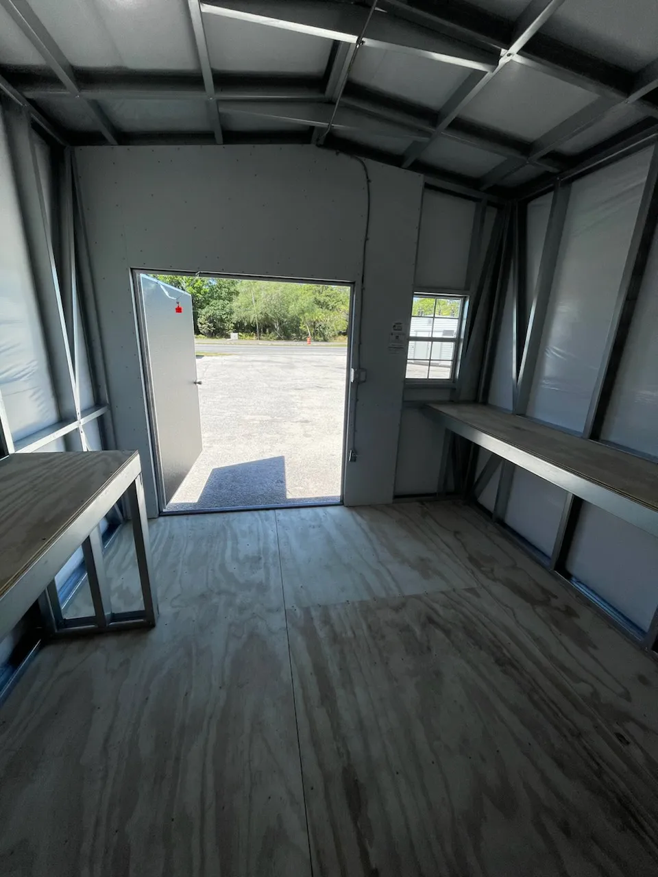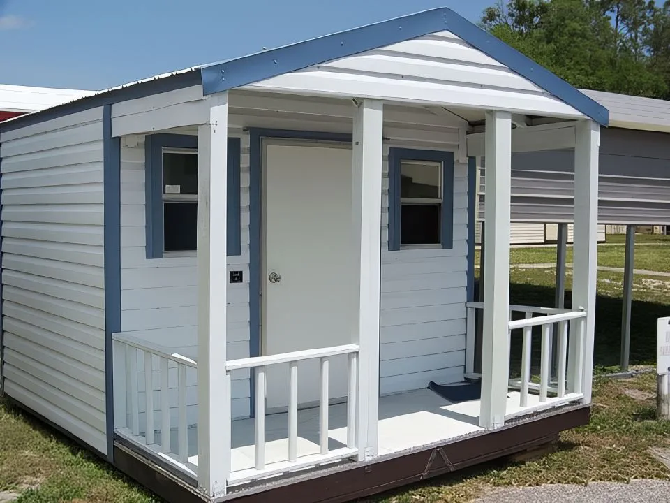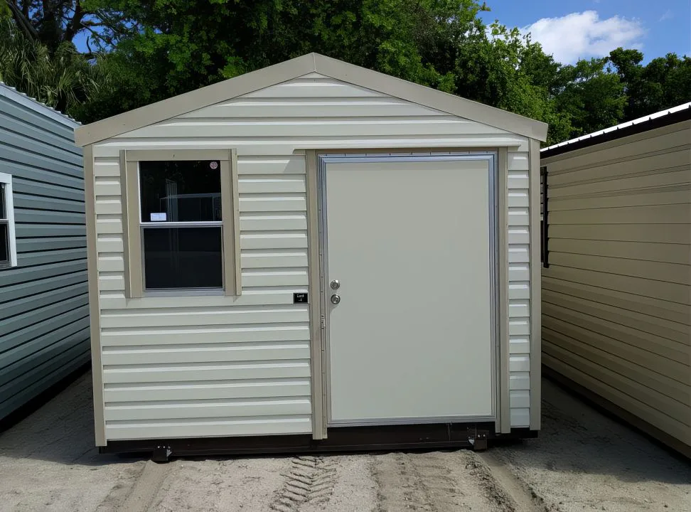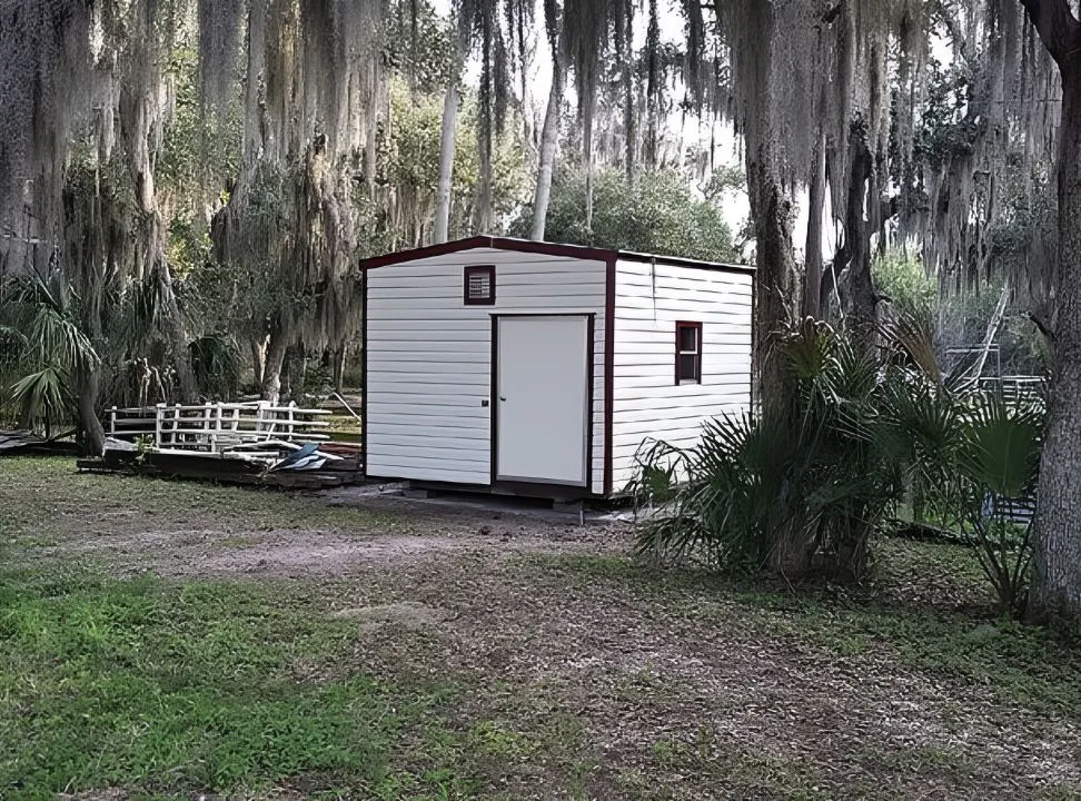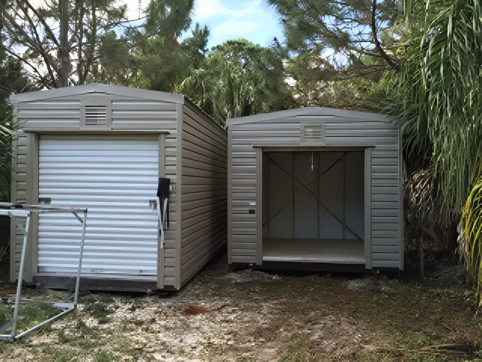 Our sheds come with lights, outlets and wiring! Built for Florida weather, 180mph wind strength.