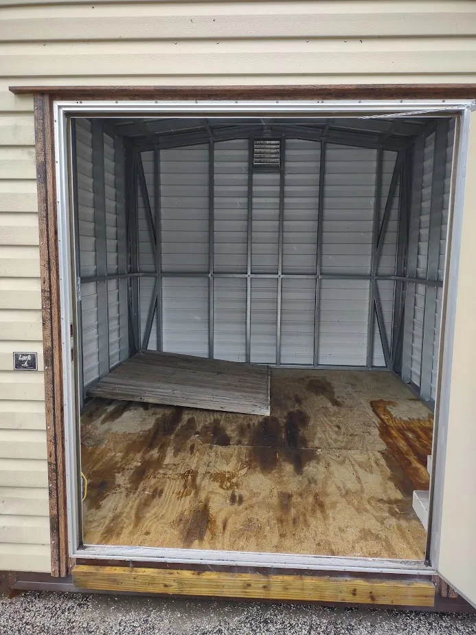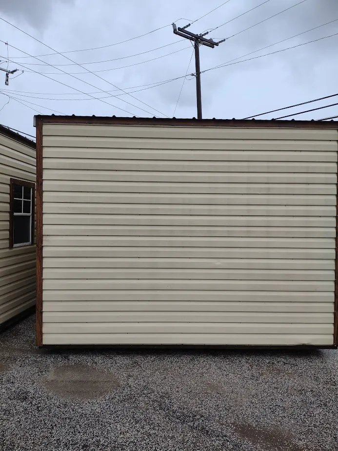 10 x 12 Preowned Lumberjack shed. Antique Beige and brown trim with a 60 in door. Has 1 vent 1 light/outlet and even comes with a ramp. Price is $3700 with free delivery & professional installation! Give a call or stop by today!