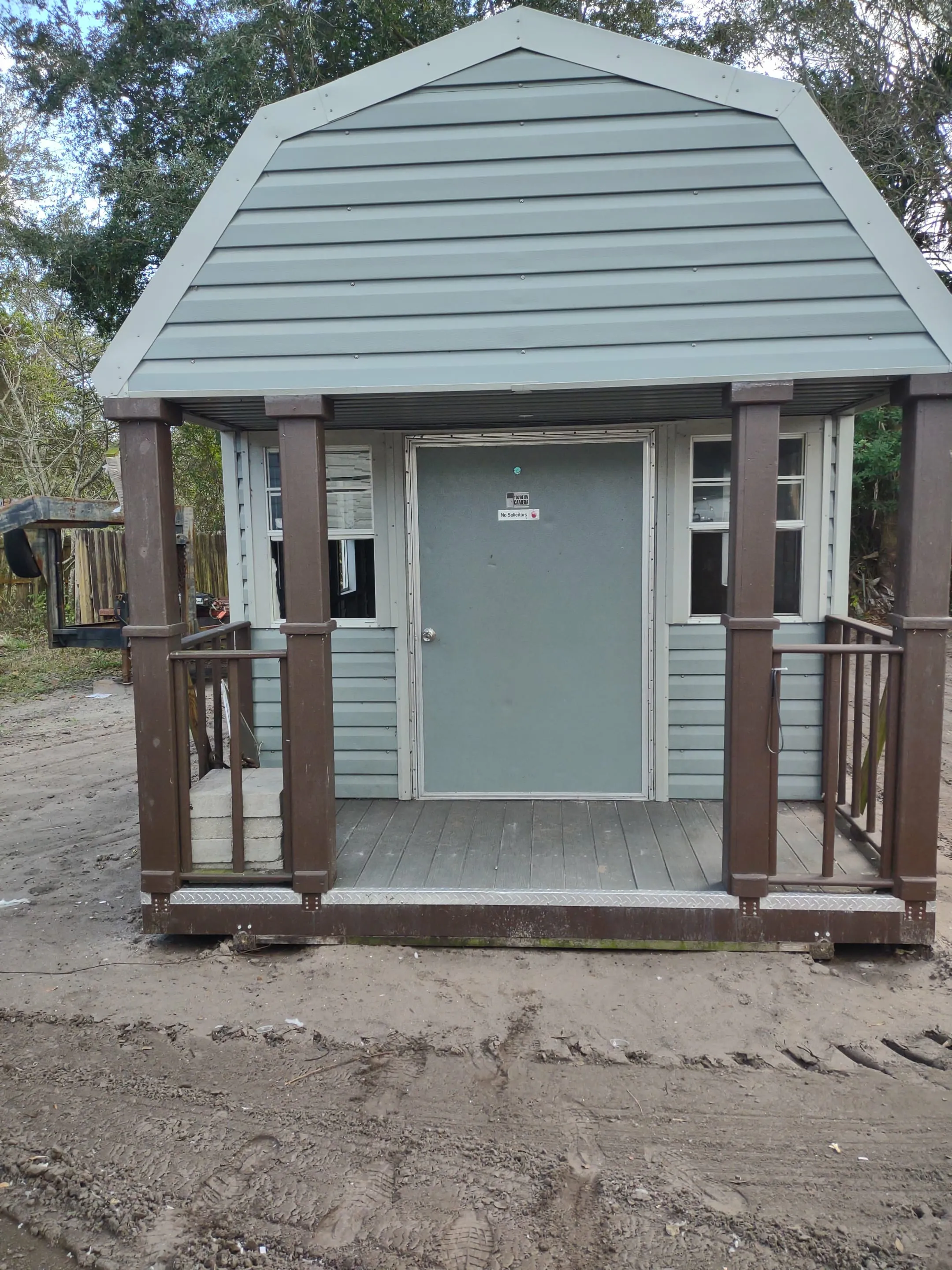 Here's a used 10 x 16 Playhouse Endgable, with 2 windows, 2 lights and 2 outlets. 46 x 72 door 4 ft porch. Price is only $4,935.