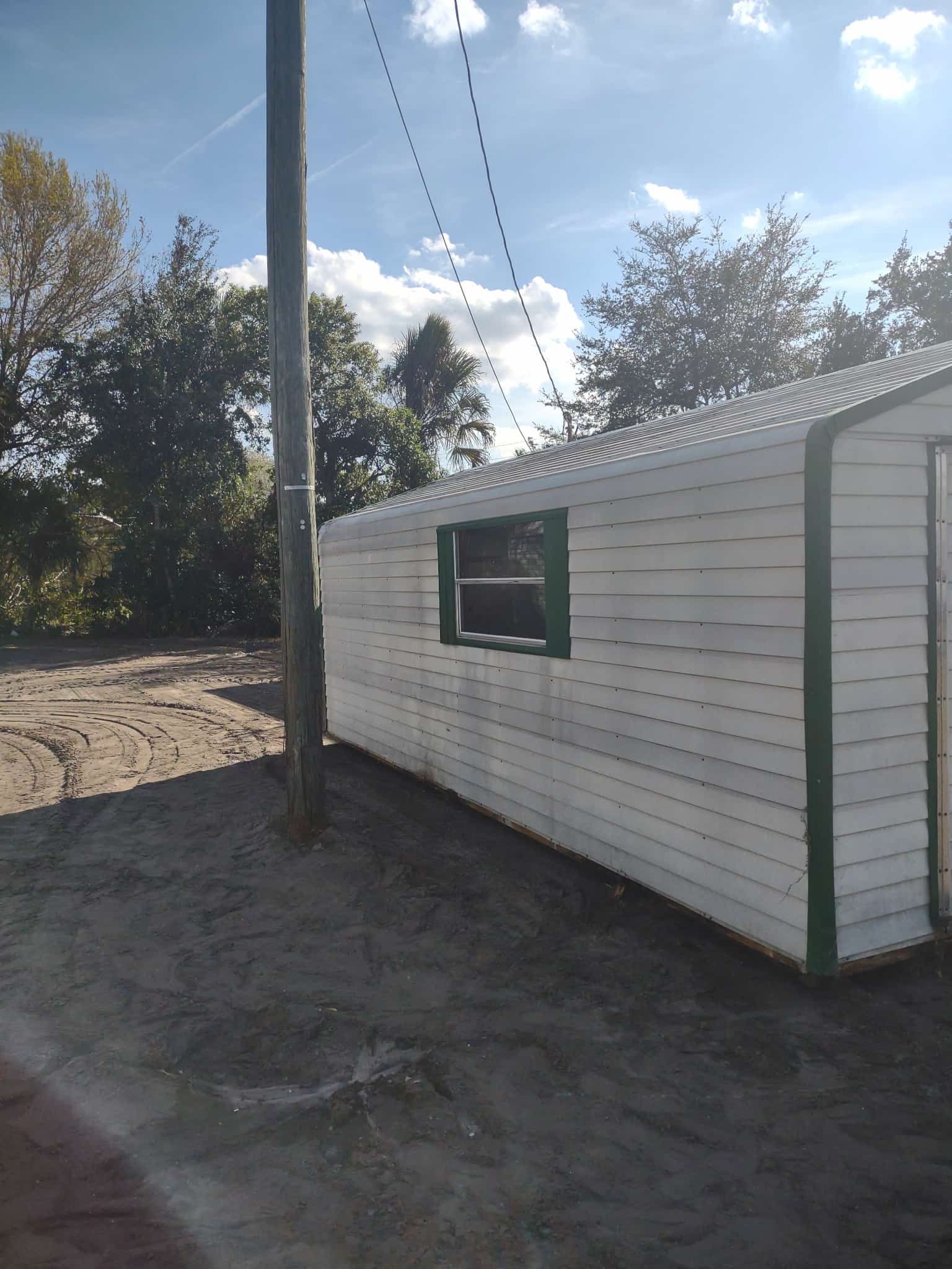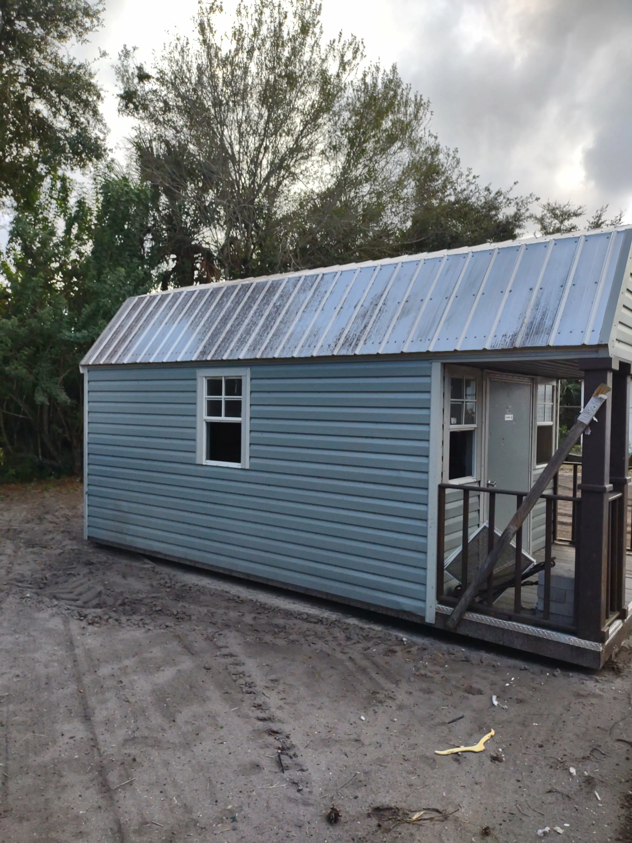 SOLD! 12 x 20 Preowned shed. Fixer upper shed, 2 doors, 3 windows, shelf lights/outlets. $2, 500 price includes free delivery and professional installation! Give us a call today!