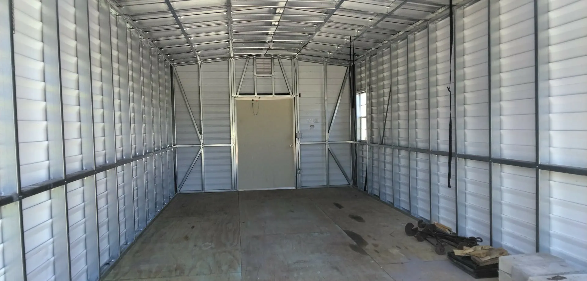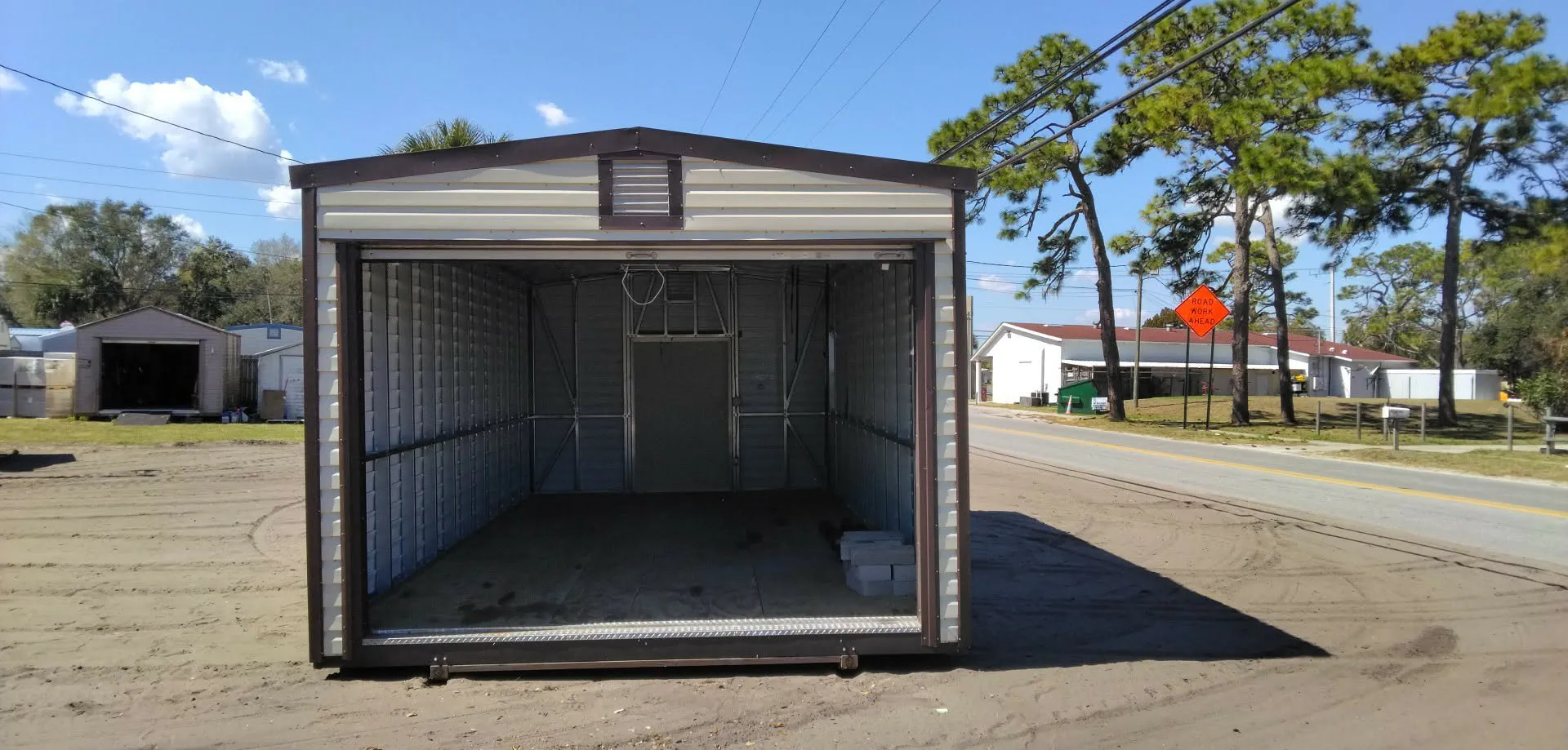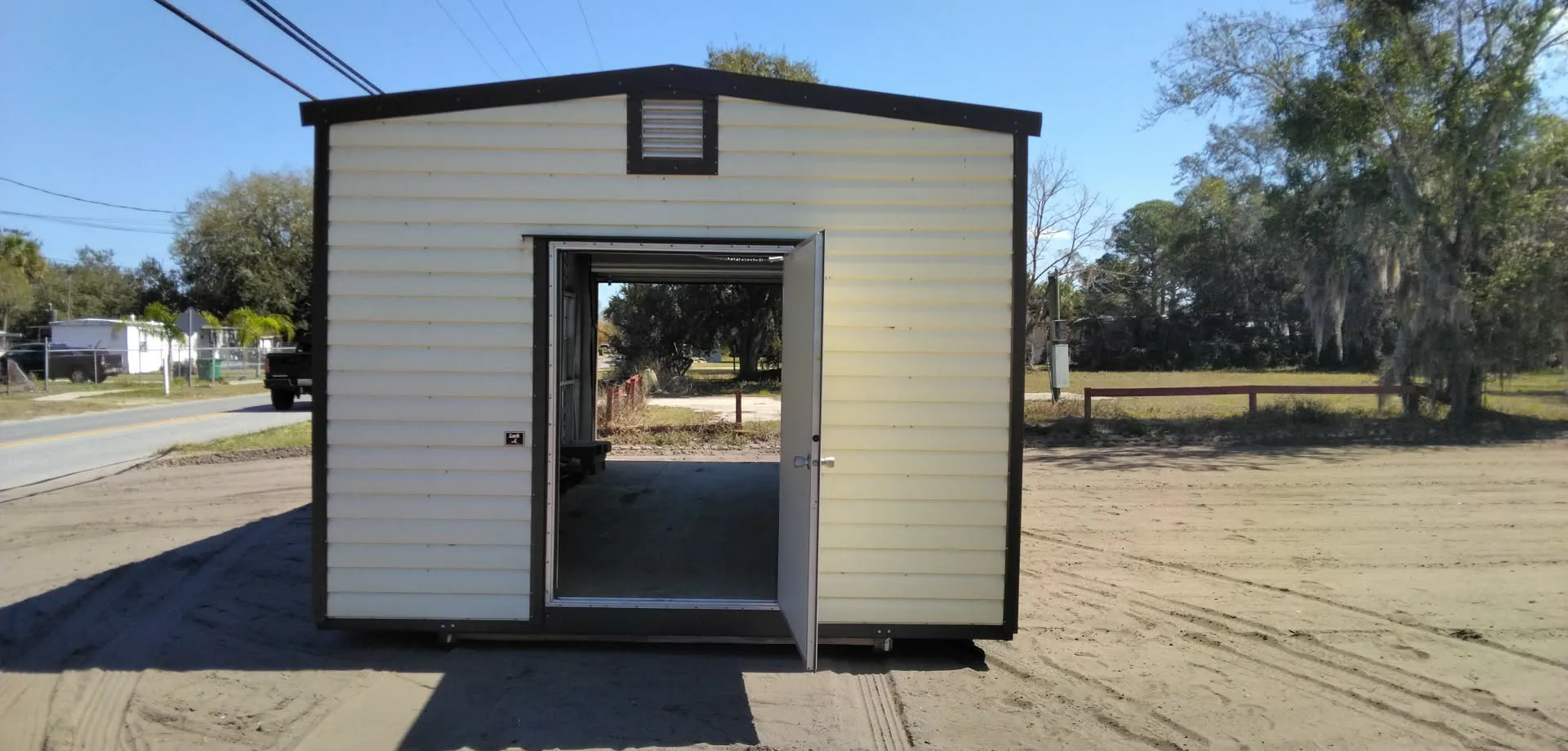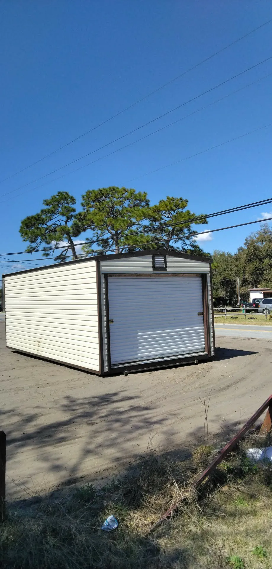 SOLD! 12 x 24 preowned shed. 10 x 7 Roll door, 46 x 73 man door, 2 windows 2 vents 2 lights 2 outlets. Price is $7,000 Free delivery and professional installtion!