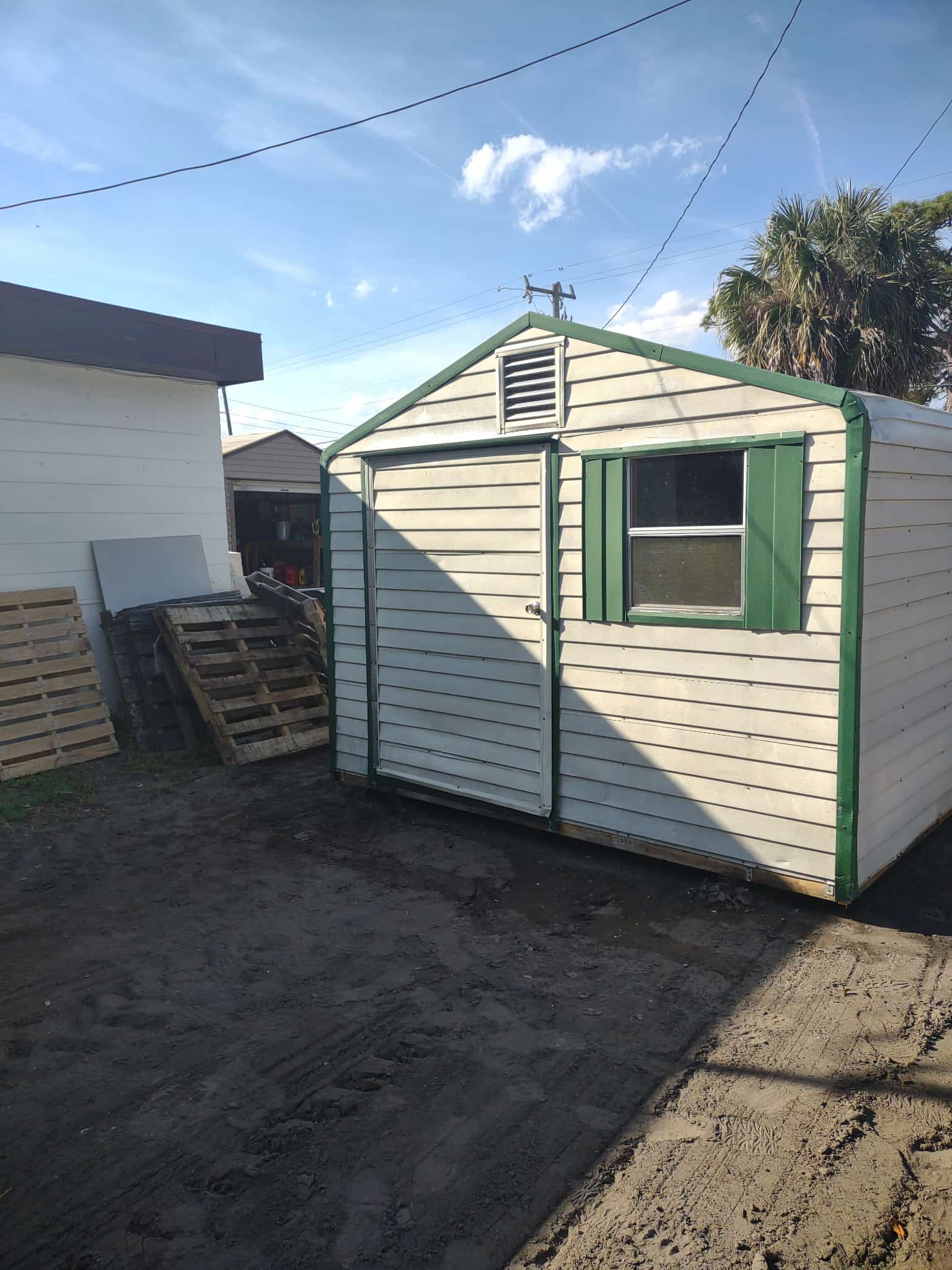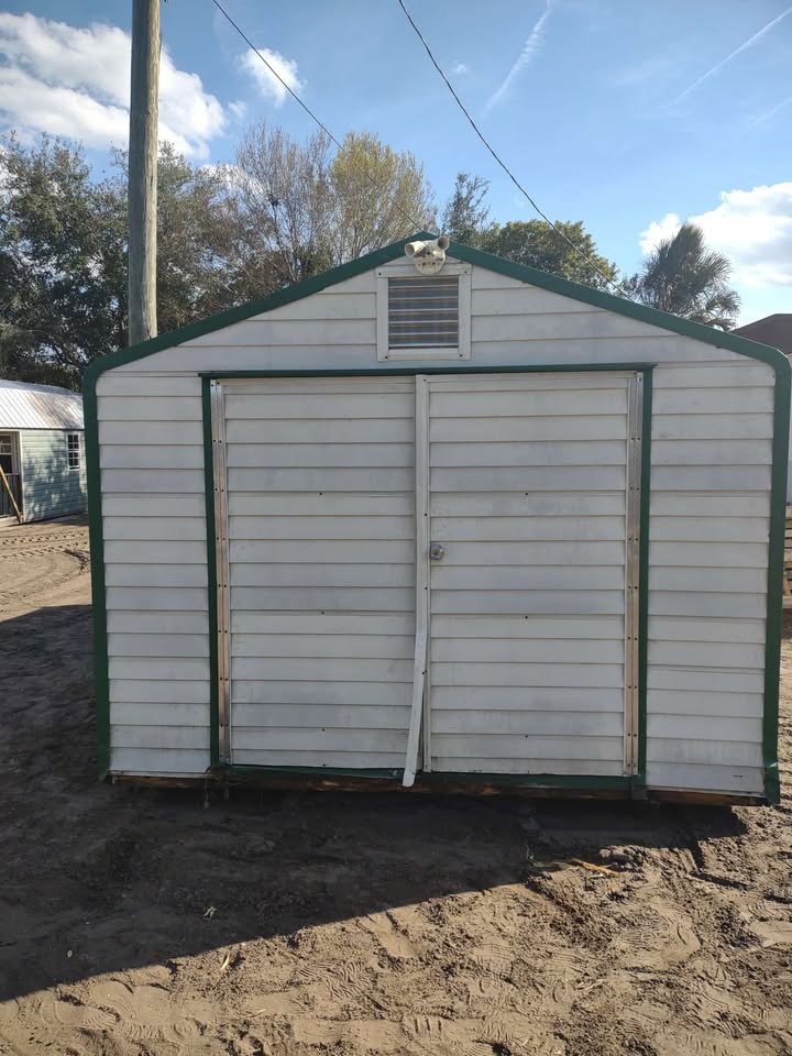 SOLD! This is a used 12 x 12 preowned shed. Has 2 windows, 2 vents, 1 light/outlet. $4,000 with free professional delivery and installation! Stop by or give us a call today!